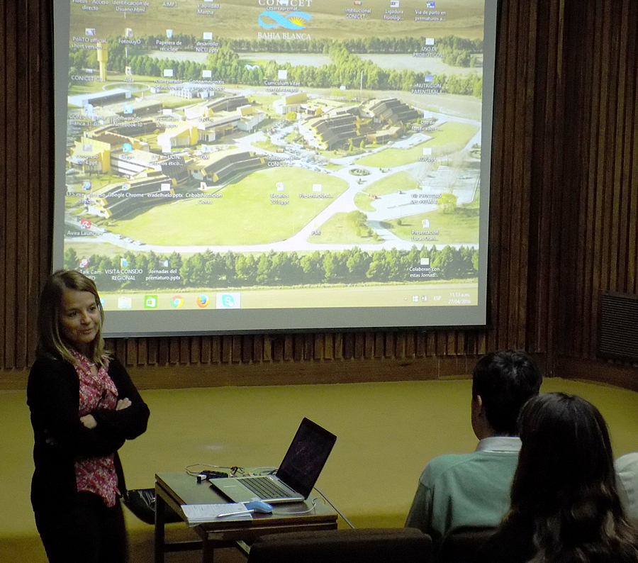 Tras la proyección de un video institucional, tomó la palabra el Dr. Gustavo Appignanesi, director del CONICET-Bahía Blanca, quien en su mensaje de bienvenida los invitó a vivir esta etapa con entusiasmo y con calidad humana, resaltando el trabajo en equipo. Luego el Dr. Ernesto Ugrin, coordinador de la Unidad de Administración Territorial (UAT), hizo una presentación institucional del CCT, haciendo referencia a su estructura, su historia y su lugar dentro del sistema nacional de Ciencia Tecnología e Innovación Productiva.